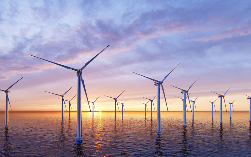 Converts atmospheric kinetic energy into electricity via turbines, providing a sustainable and efficient renewable.